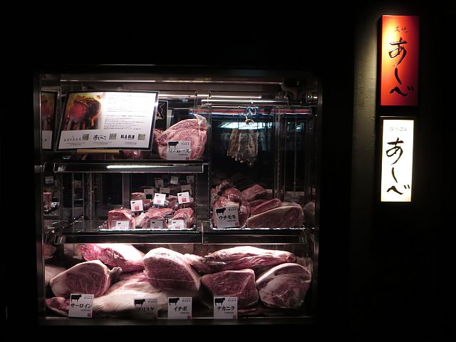 店頭のショーケースに陳列されたおいしそ~な牛肉の数々・・・。