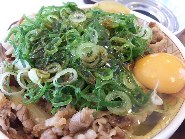 せめて彩りを・・・とワケの分からん気をまわして「ねぎ玉牛丼」。