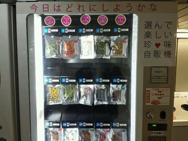 これまでは【焼鳥の自販機】だったり【カバン(バッグ)の自販機】だったりそれはそれはインパクト大の話題性があったんですが今朝久々に見たら単なる【おつまみ自販機】に置き換えられてました…(泣)