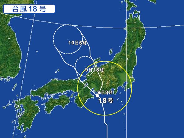 台風18号が名古屋に近付いています。