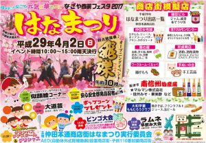 商店街加盟店などが仲田公園に模擬店を出して「はなまつり」を開催します!