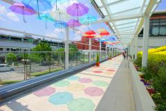 館内の5か所に合計約350本の傘が咲き誇ります。