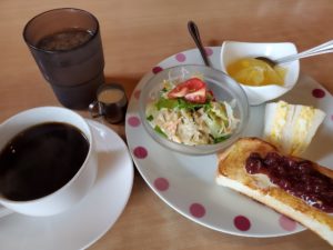 モーニングもサラダやパン、ゼリーなど食べられて