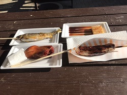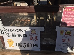 その横には子持ち鮎。後ろの建物には手づくりフランク。