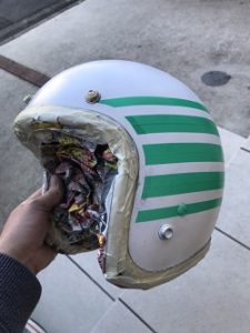以前オレンジメタリックだったヘルメットを家に転がっていた