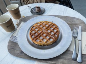 テレビ塔の真下にあるカフェでコーヒーとワッフルを食べました。