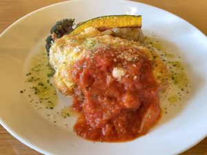 「チキンとタルタルチーズ焼きトマトソースを添えて」だったような気がします。すみません、名前忘れてしまいました
