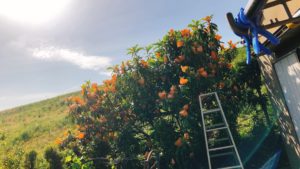 後半は手が届かないので、木登りしながら、片手で木を引っ張って、片手で袋がけをするスキルが身につきました。