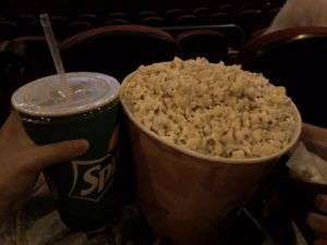 しかもビックリしたので向こうではバターみたいなのをこのポップコーンの上にかけているんです!しかも無料で