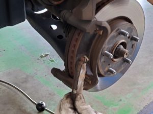 まずはタイヤを外し、ブレーキパッドを外してました。