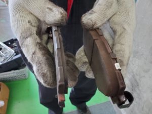 外したブレーキパッドと交換していただく中古のブレーキパッド♪