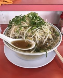画像は大盛りラーメン、もやし、ネギ多めです。