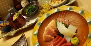 ※奥がおばんざい5種盛り、手前がお刺身の盛り合わせ