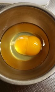 殻を割ったら双子になりかけの黄身が出てきました!!😲