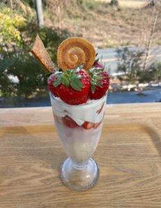 こちら、いちご狩りのハウスの隣にあるカフェ「いちごの丘のケーキ屋さん」で