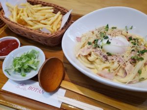 カルボナーラもスパゲティより太いうどんに合うような