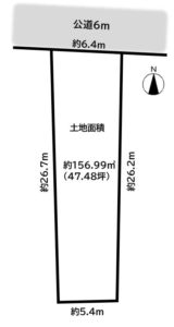 間口も約6.4mあり、奥行きが約26mの長方型。