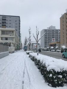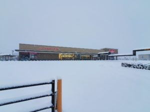 通勤時、自宅付近のバローの前を通ったら一面の銀世界!