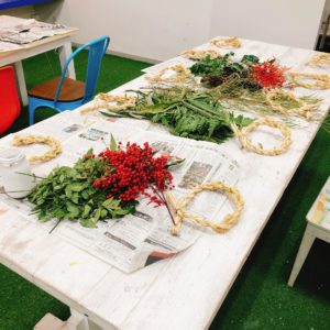 お家に鏡餅とお正月飾りが、自分達でつくったものを