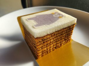 その時にいただいたお菓子がくまモンの型のバームクーヘン!