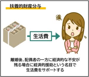 配偶者が専業主婦(夫)などの場合、結婚生活中の貢献度に従って財産をわけるだけでは、離婚後の生活が著しく困難になる可能性も考えられます。そのような場合は、離婚後の生活の安定を手助けする扶養的な意味合いで、収入が少ない方へ財産をより多く分配することです。