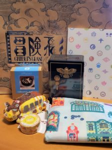 右手前にあるジブリの大倉庫をモチーフにした「建物テキスタイル柄」のエコバックは、可愛すぎて使う用と保存用の2つ買いました(笑)