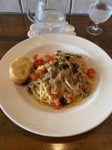 今回は迷いに迷って、トマトとオリーブのパスタにしました。