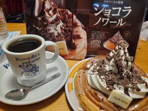 コメダ珈琲店に友人とお茶しに行ったら、クラブハリエ監修のショコラノワールが販売しており、美味しいだろうと注文しちゃいました(^▽^)/