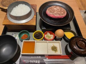 その他、とろろや生卵がついていて、ご飯とあわせてハンバーグ丼にするのも良いです。