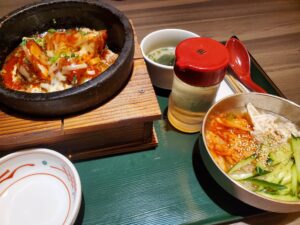 お昼に食べたヤンニョムチキンのビビンバと冷麺も美味しかったです!