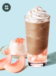 「ピーチパンナコッタ&アールグレイティーフラペチーノ」です。桃が好きでずっと気になっていたので、飲めて嬉しいです。