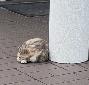 たまに縁石の上に顎を乗っけて寝ていたり、