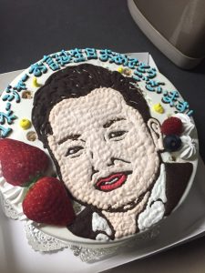 日頃の感謝も込めて、みんなから似顔絵ケーキ 😛